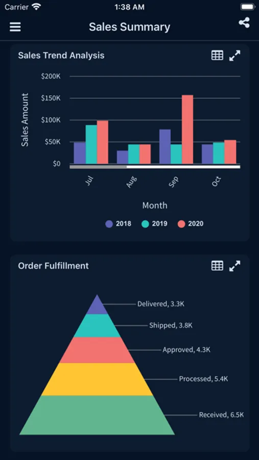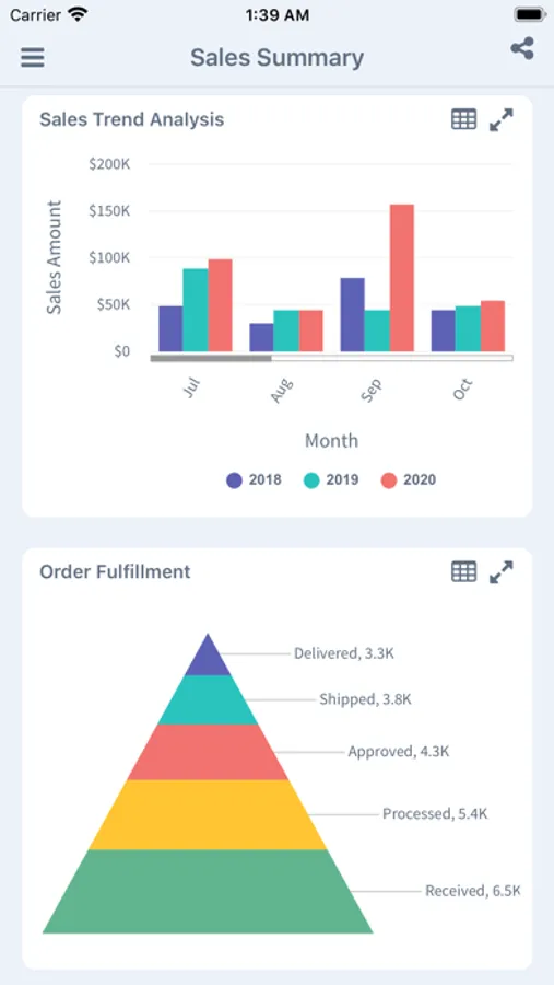 Brainweber app empowers businesses to provide users with real time access to critical data and insight through its rich and easy to use dashboards. Dashboards consists of widgets that can be customized and arranged to fit the needs of a department or individual user. Multiple dashboards can be organized under folders for easy navigation and access control.