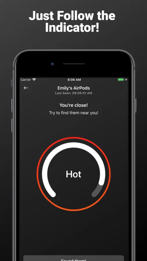 - When you are within a few meters, the indicator will display Hot!