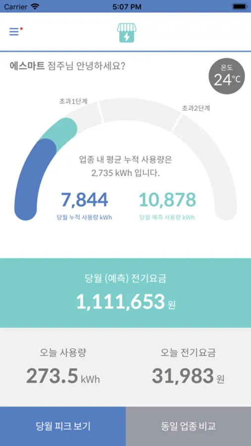 : 나와 동일한 업종의 전력사용량을 비교할 수 있습니다.