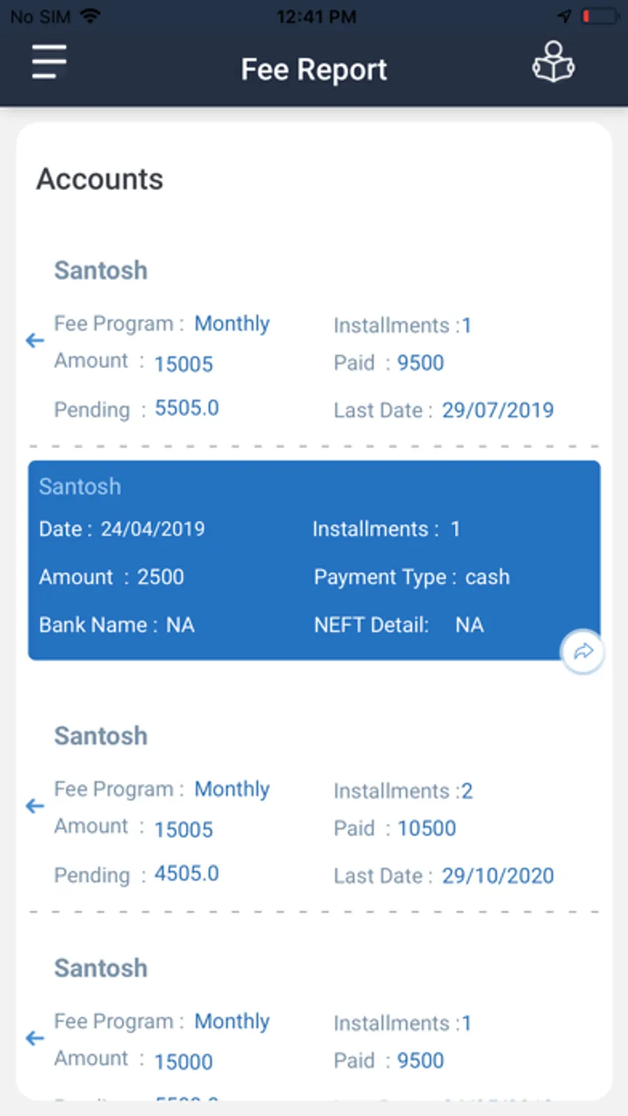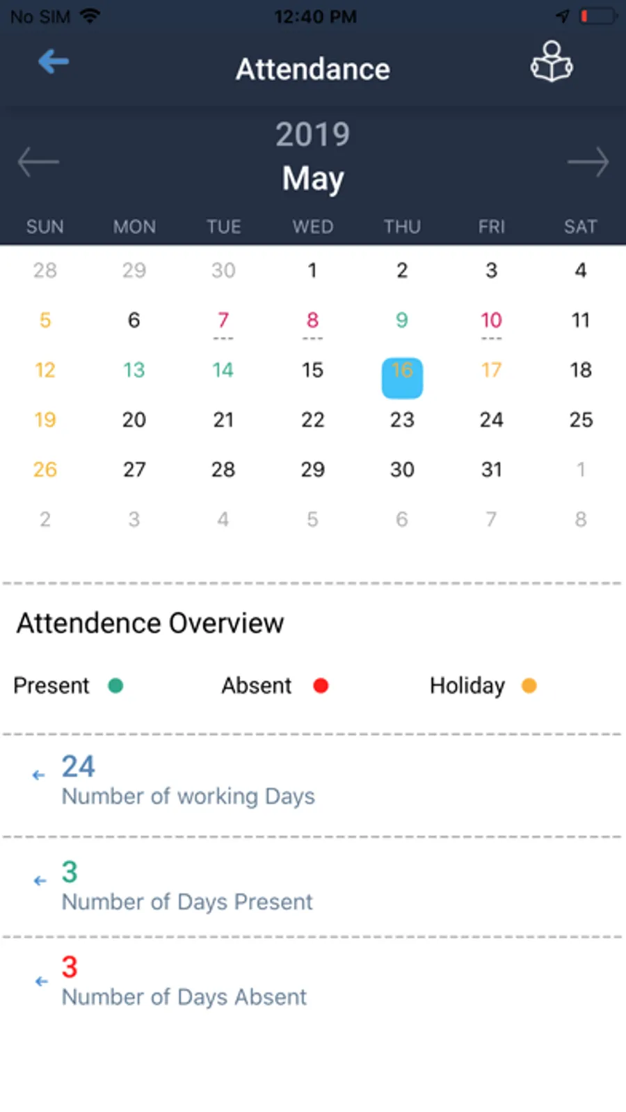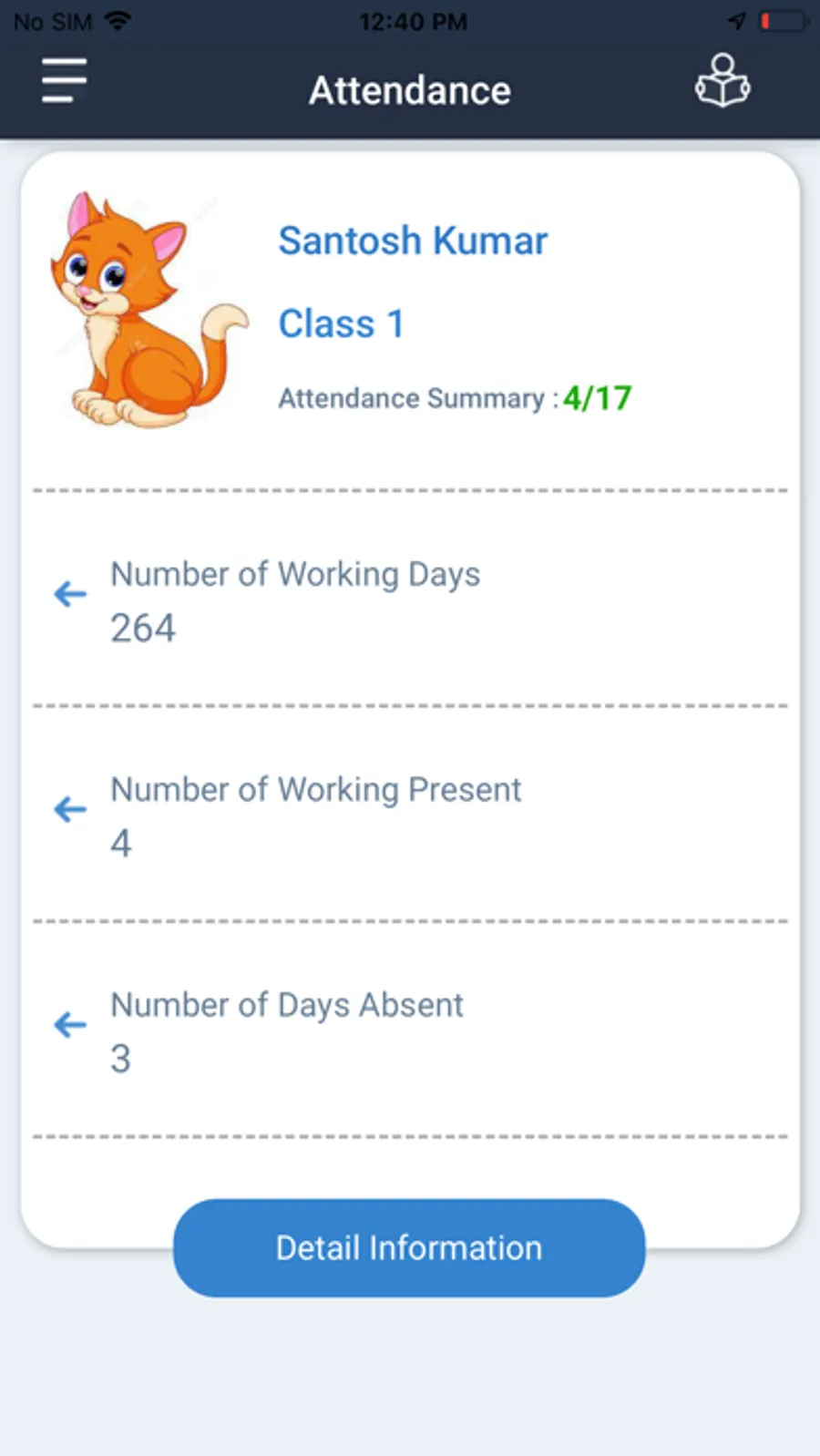 The Attendance of the ward can be seen via app with Daily/Weekly/Monthly records on their fingertip with calendar view.