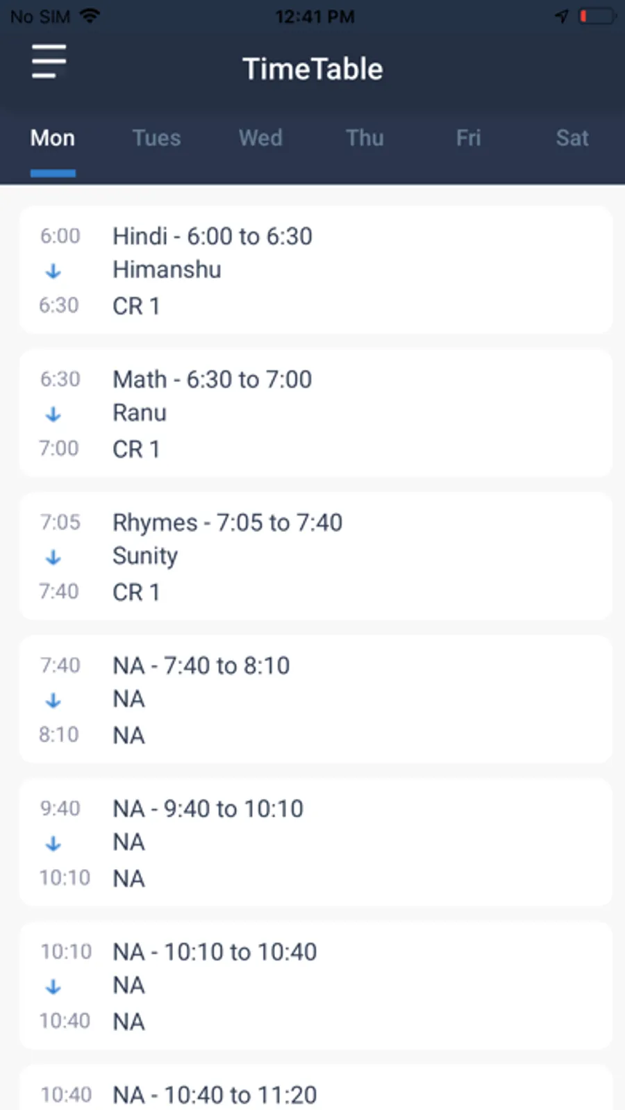 The Time table, School events and holidays update will be received on app and details can be checked.