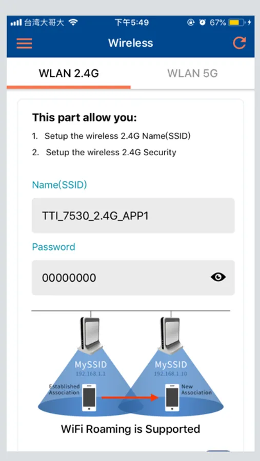 2. Users can use APP to set 2.4G WiFi, 5G WiFi, LAN and WAN settings.