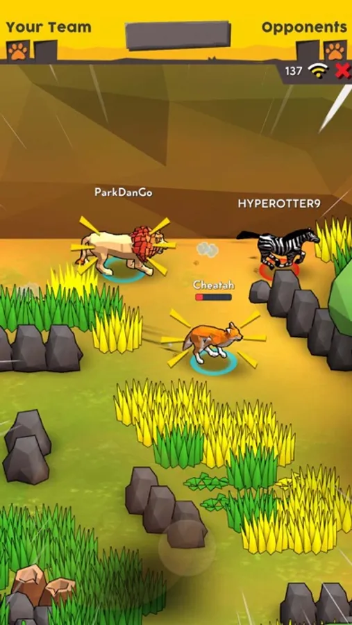 Play in multiple rounds as predator and use your stealth ability to catch the prey, or use your quickness and agility to avoid being captured as a prey. Win by filling your belly with grass from the great savanna.