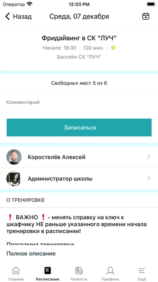 С помощью приложения вы можете записываться на тренировки по плаванию и фридайвингу, следить за новостями школы, лекциями, мастер-классами, семинарами и прочим. Оперативно получать информацию об изменениях в расписании и специальных предложениях