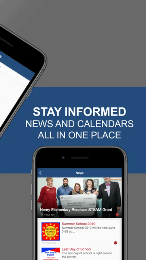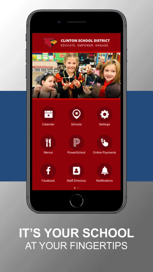 With the Clinton School District mobile app, your school district comes alive with the touch of a button. Easily navigate through current news and events or check out the latest updates with social media. Quickly retrieve contact information, sporting scores, lunch menus, and more! It’s your school district available at your fingertips.