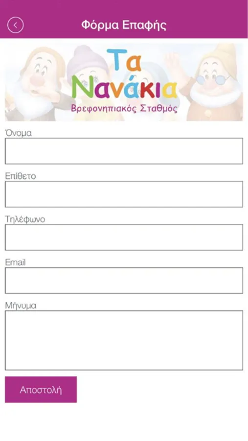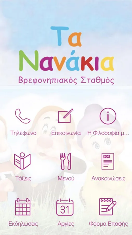 Αγαπητοί μας γονείς, Καλώς ήρθατε στην εφαρμογή του Βρεφονηπιακού μας Σταθμού "Τα Νανάκια". Με την εφαρμογή μας θα μπορείτε μέσω των κινητών σας τηλεφώνων, να ενημερώνεστε οποιαδήποτε στιγμή επιθυμείτε σχετικά με την Τάξη των παιδιών σας και γενικότερα για τα νέα του Σταθμού μας. Ευχαριστούμε για τη συνεργασία σας και σας ευχόμαστε όμορφες και αξέχαστες στιγμές στο σχολείο μας!