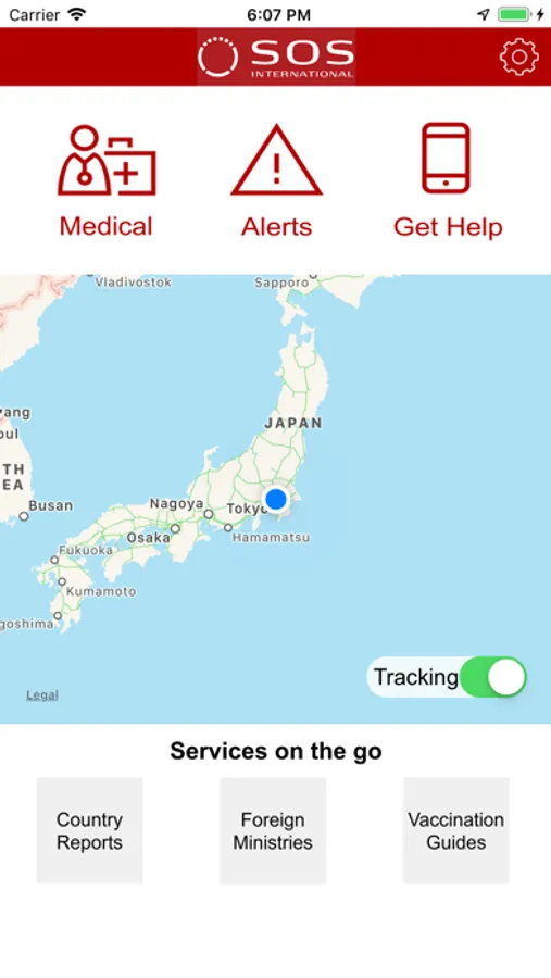 To access the app, a corporate email address of an authorized client of SOS International is required.