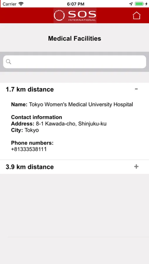 If you need help, you can access directions to the nearest hospital that has been selected by SOS International or other places maintained by your company.