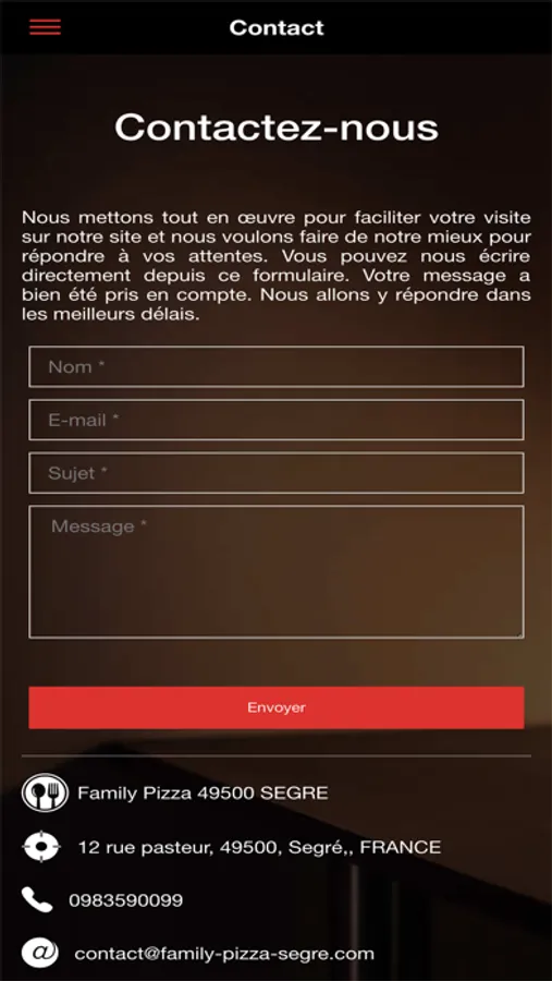 Votre restaurant Family Pizza Segré vous livre à domicile et au bureau vos plats préférés. Commandez en ligne facilement. Retrouvez tout vos plats préférés et l'ensemble des offres directement depuis l'application Family Pizza Segré.