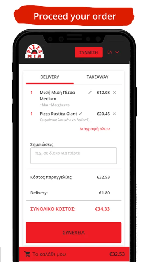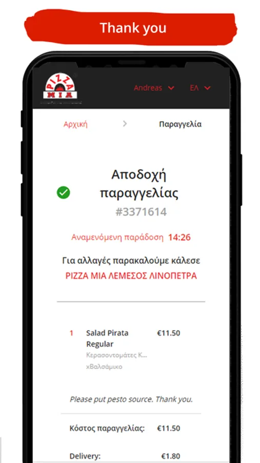 You can order for delivery and take-away, and you will also be notified with an SMS for the waiting time of your order.