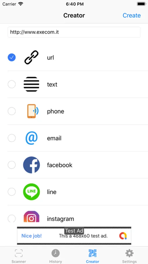 - Icon indicating the type of scanned QR code