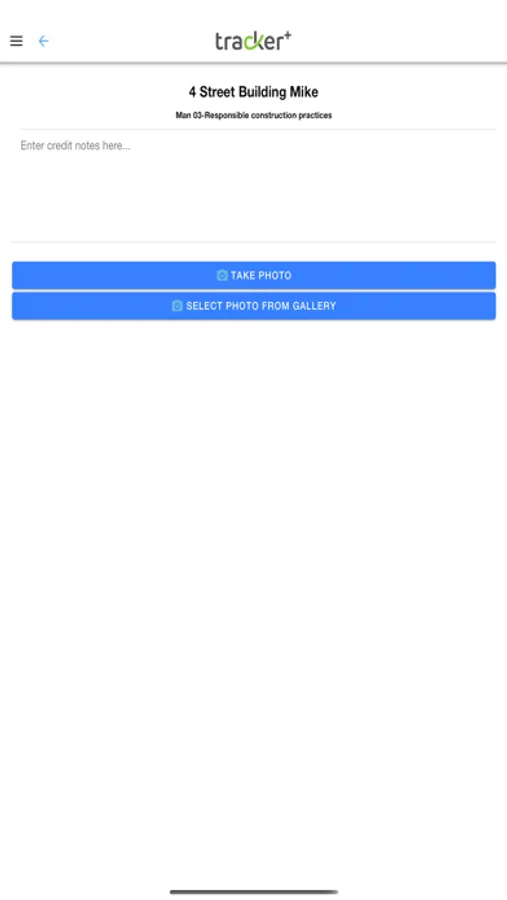 Using the App you can log in to your project, take photos for the relevant credits and add comments.