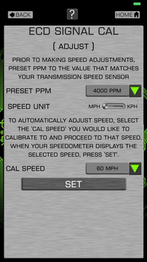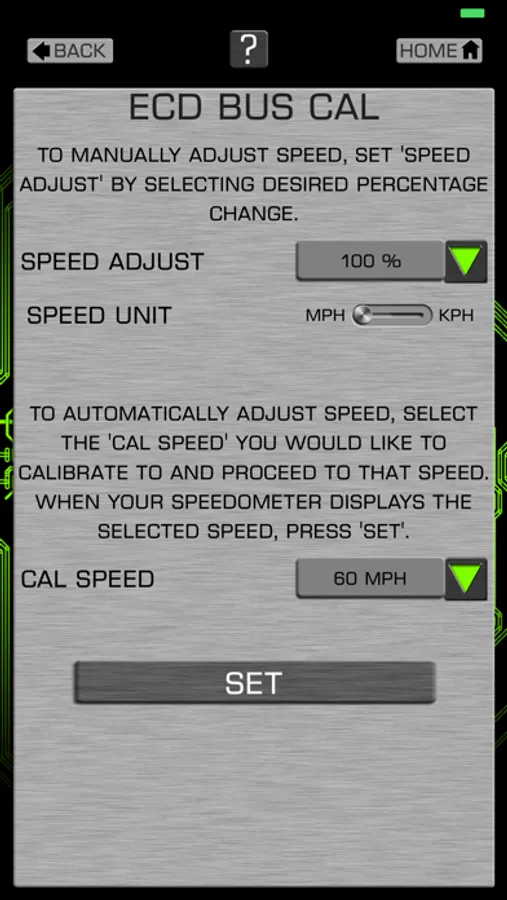 -Speedometer percentage +/- adjustment for quick fine tuning