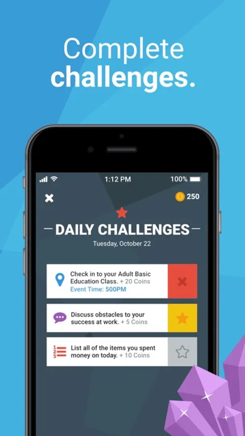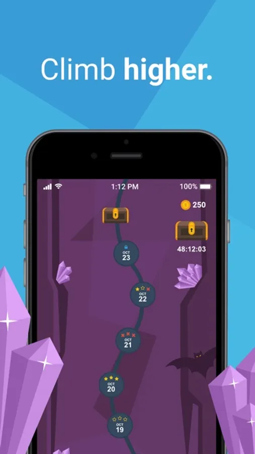 Casano delivers daily challenges straight to your phone that help address the areas of your life that are holding you back. Successful completion of these daily challenges advances you on your quest up to the mountain top. Have fun along the way by playing a game of breaking boulders, mining gems, and earning achievements.