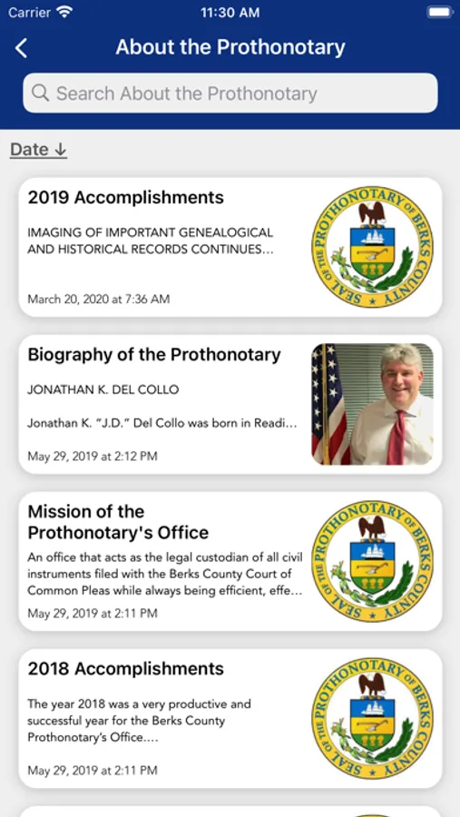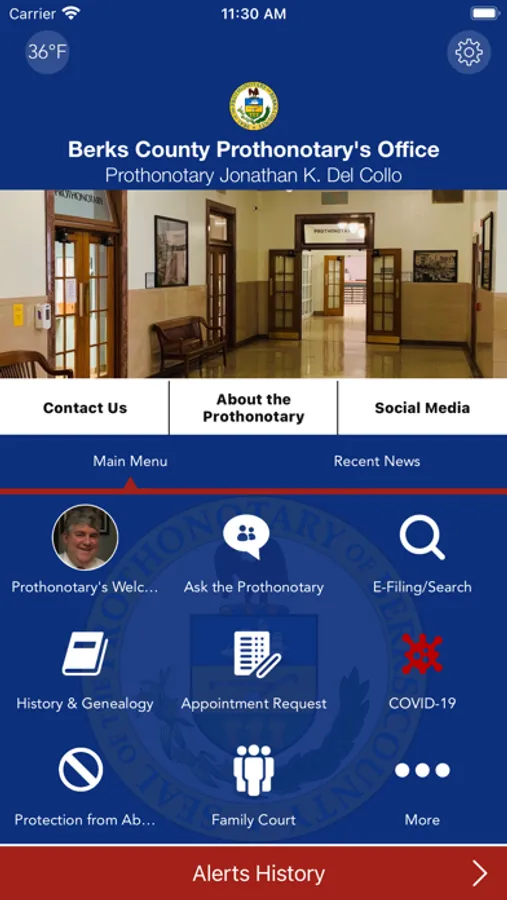 The Berks County Prothonotary's Office mobile application is an interactive app developed to help improve communication with area residents. The Berks County Prothonotary's App allows residents to connect with the Berks County Prothonotary's Office by e-filing, searching genealogical records, finding information on passports, and more. The app also includes up to date public releases.