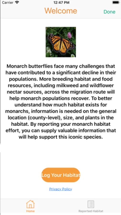 Monarch butterflies face many challenges that have contributed to a significant decline in their population over the last two decades. More breeding habitat and food resources, including milkweed and nectar sources, across the migration route will help monarch populations recover. HabiTally enables farmers, ranchers, landowners and private citizens to support these efforts by entering data about their monarch habitat conservation efforts. Data collected through HabiTally will be made anonymous and aggregated at the county level. HabiTally data will be shared with other parties involved in monarch conservation/habitat implementation while remaining anonymous.