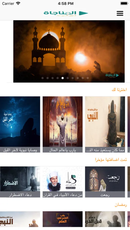 منصة المناجاة الإعلامية هي الخيار الإعلامي الأول للباحثين عن طمأنينة الروح ؛ والمصدر الموثوق للأدعية والابتهالات الواردة في القرآن الكريم وصحيح السنة النبوية حيث نسعى بعون الله أن نكون سبباً في التخفيف عن كل مكروب ؛ والسلوة لكل محزون ؛ من خلال باقات ٍ من الآيات القرآنية ؛ و الأدعية والابتهالات يتم إعدادها لكل فئة ٍ من فئات المكروبين ؛ وعرضها بصورة ٍ إعلامية ٍ جذابة ؛ بحيث تصلهم بشكل ٍ منتظم عبر وسائط تكون قريبةً وسهلة َ التناول والتداول والانتشار ؛ بحيث تكون مكتبتنا الإعلامية هي المرجع الأساس في باب المناجاة والابتهالات
