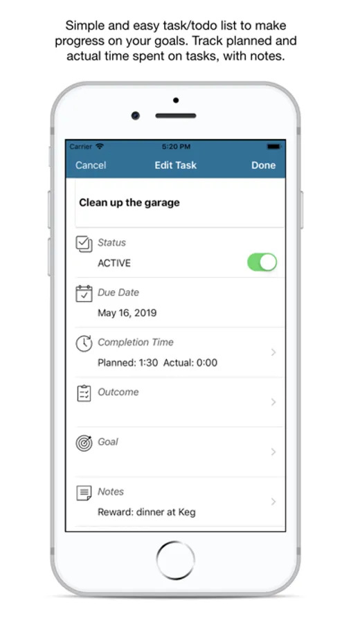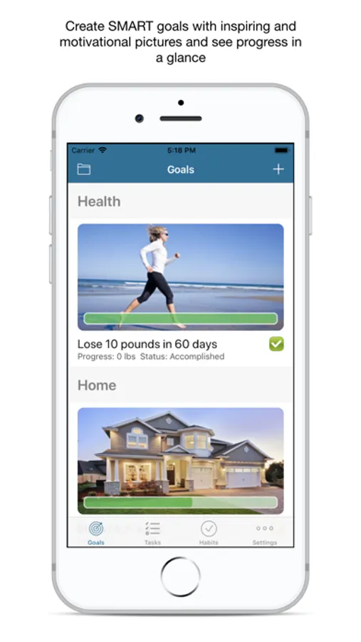 ● Real time progress tracking features allow you to view instant progress on your goals whenever you complete a task.