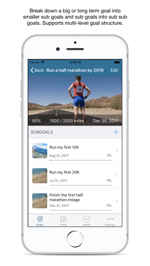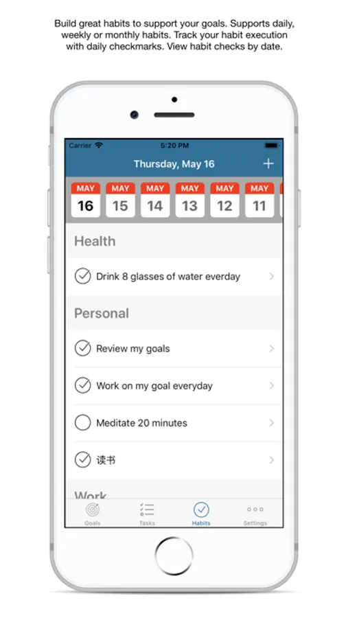 GoalsOnTrack is also a productivity app that helps you manage and track tasks or todos that contribute to your goal progress. You can also build and track your habits for your goals, and keep yourself motivated with goal journal and vision board tools.