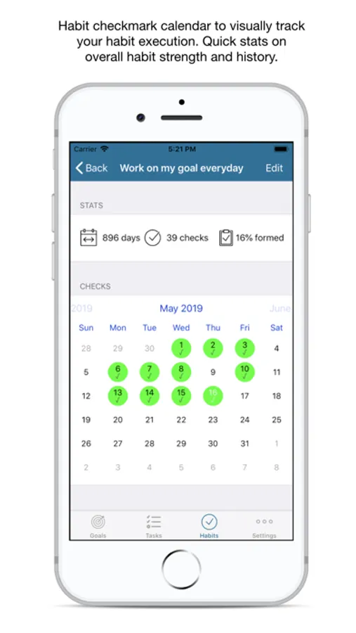 ● Tracking your habits is as simple as placing check-marks on habits tracker calendar tool.