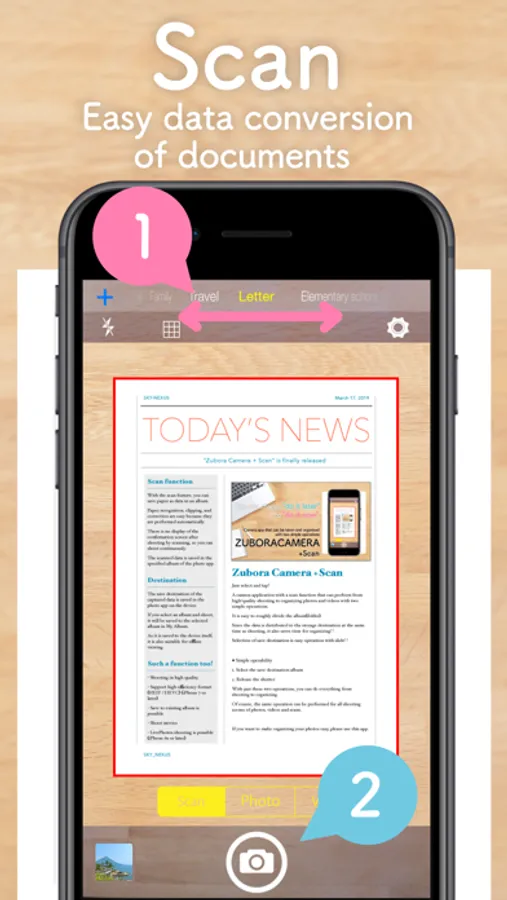 A camera application with a scan function that can perform from high-quality shooting to organizing photos and videos with two simple operations.