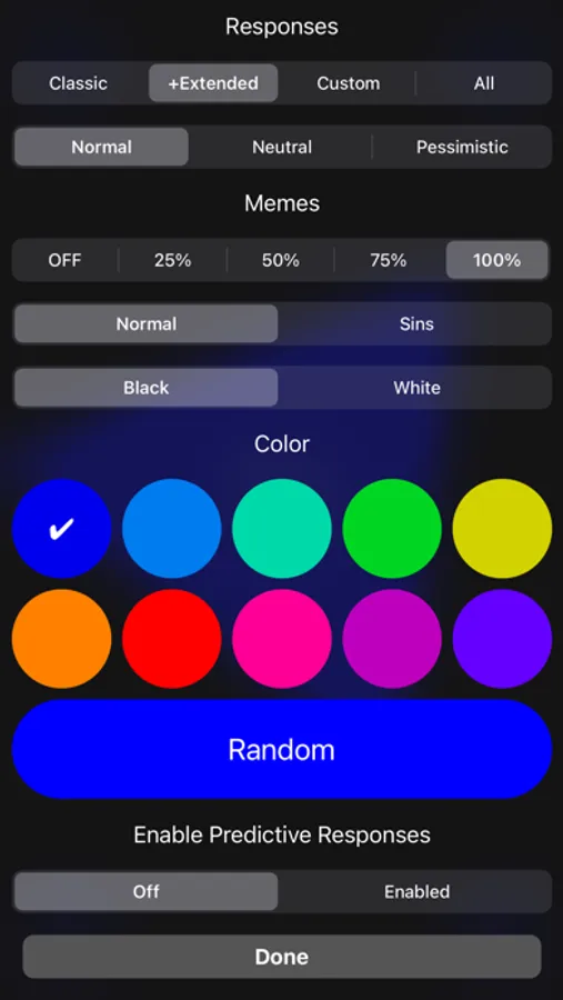 • Set the demeanor of 8-Ball! (Default, Neutral, or Pessimistic)