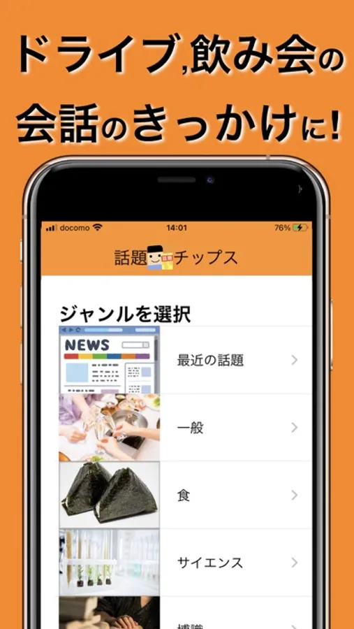 ドライブ中、飲み会(オンライン)などでの話題を提供します。