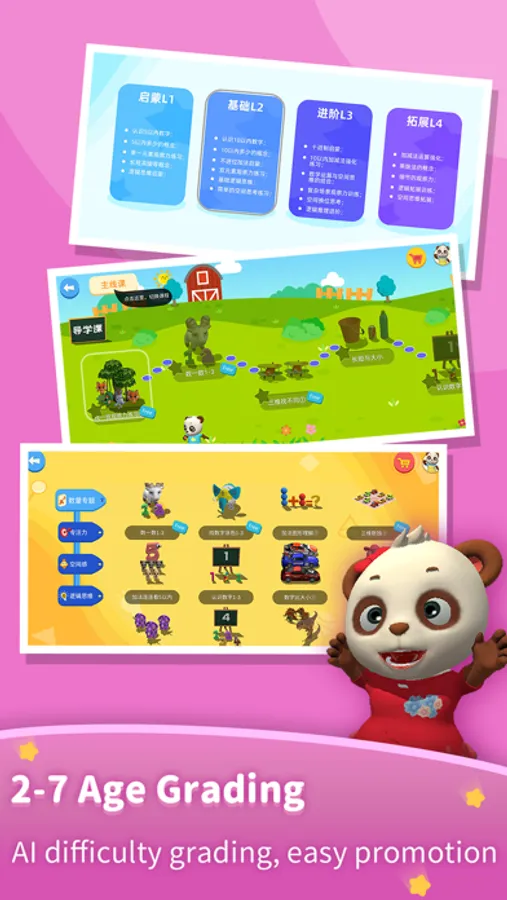 3. Course classification, 3 years old-4 years old-5 years old-6 years old-7 years old have corresponding difficulty;