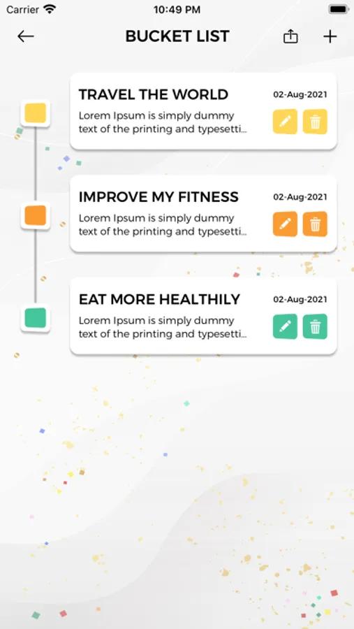 Once you have your bucket list made, use the Inspired Action section to create tasks which will help you achieve your list. For example, if one of your bucket list items is ‘climb a mountain’, use an inspired action like ‘train hill climbing daily’ to prepare yourself for the task.