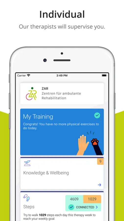 • ZAR Therapy App allows you to exercise correctly with the appropriate intensity