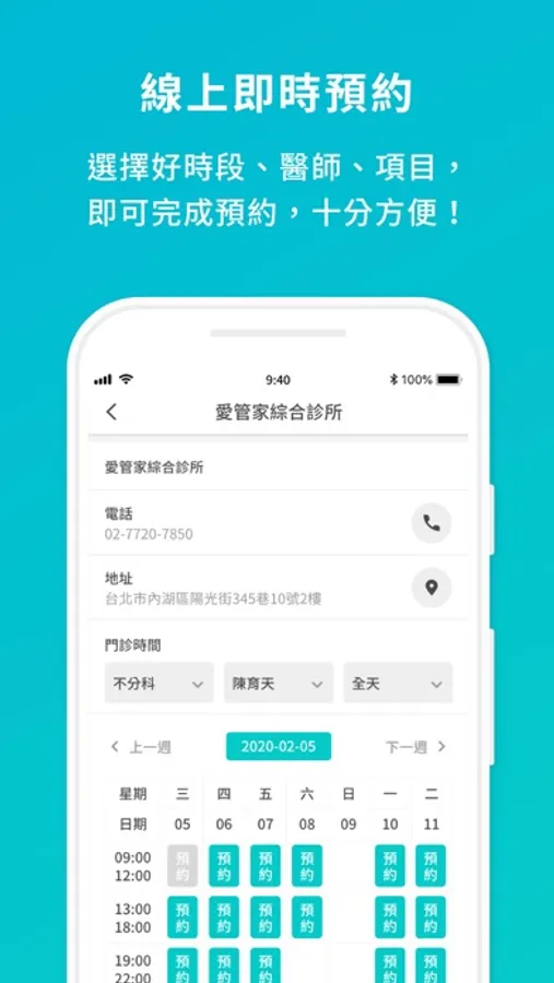 iCare提供給您線上預約的服務,您可以自行選擇預約時段、看診醫師、就診項目,甚至能了解此時段的候診人數,預約完成後立刻獲得看診號碼,並收到約診通知,十分方便。