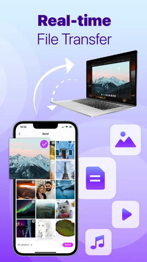 Fast and simple to transfer all your files to the target device. File sharing is made easy! Transferring a PDF file from Sender to Receiver in real-time.