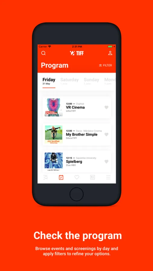 • Save the films you’re interested in as favourites and view them in calendar mode.