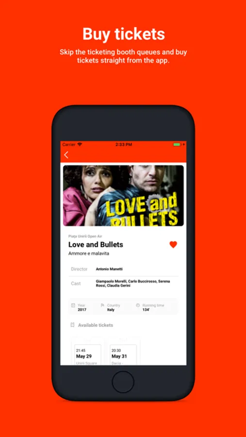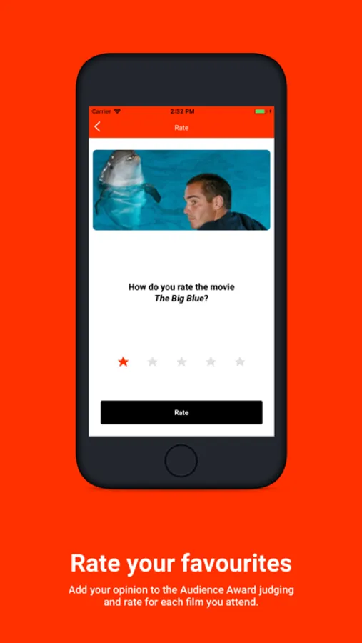 • Express your opinion of the films you’ve watched by rating them and help your favourite one win the Audience Award. Even if you didn’t buy the ticket through the app, you can still rate them by entering the code from your paper ticket.