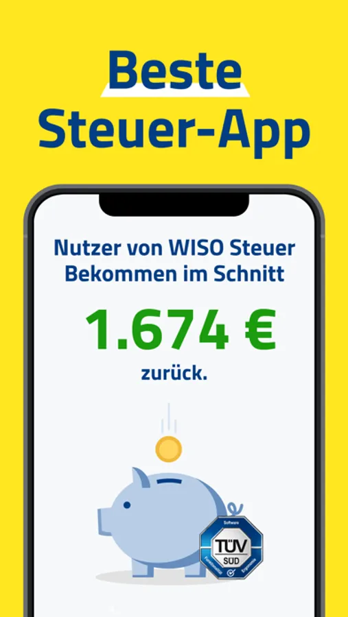 Du siehst live, wieviel Geld du vom Finanzamt zurückbekommst. WISO Steuer ist dein Steuer-Experte und hilft dir, das Maximum aus deiner Steuererklärung rauszuholen. Mit der App sicherst du dir eine durchschnittliche Erstattung von 1.674 €. Das sind über 600 € mehr als im Bundesdurchschnitt.