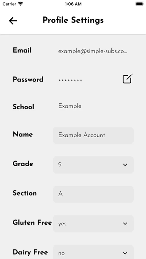 SimpleSubs allows users to place school lunch orders. These orders may be custom-made or selected from custom order presets, and may be placed up to two weeks in advance.