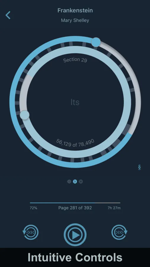 * Intuitive controls to quickly access chapters as well as discrete sections within chapters; rewind/fast forward by sentence, paragraph, and chapter.