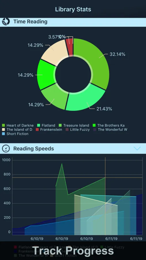 * Track reading progress and speed improvements across time for individual books as well as your entire library using beautiful charts and graphs.