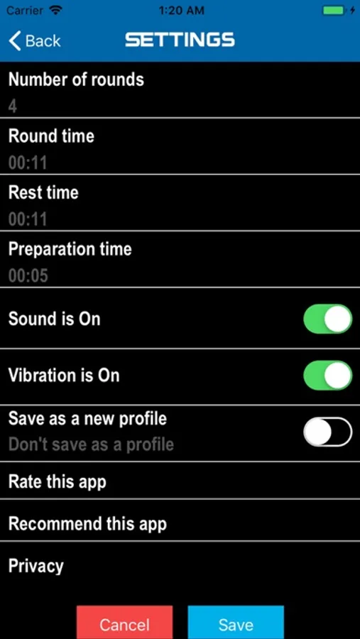 [BRT] Boxing Round Timer is a superb training counter, since it lets you customize a series of rounds, and setting the number of intervals, preparation time, work time and rest time. Also choose from sound and vibrate alerts, and then save all your setup in a profile to be used later.