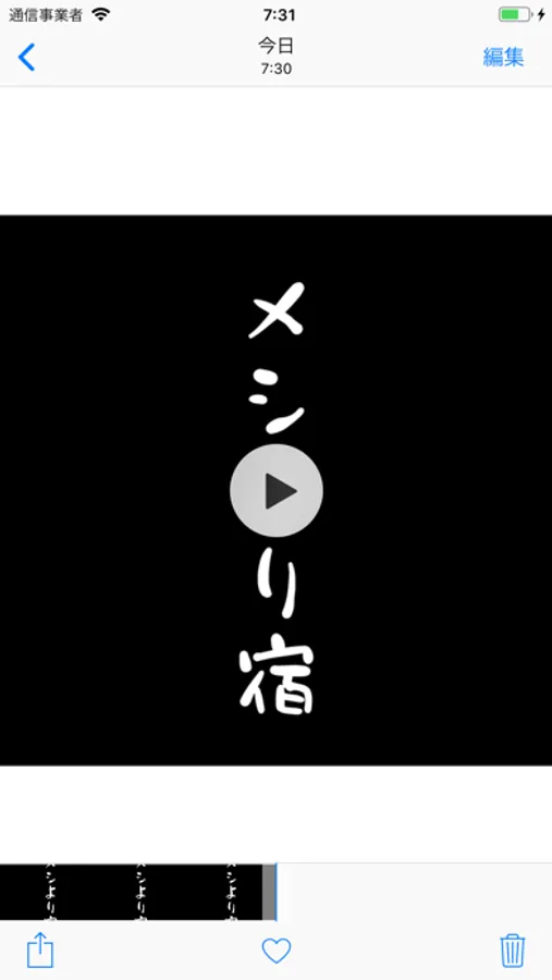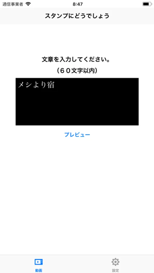 文章を入力すると、全国的に有名になった北海道のローカル番組で使われるカットのような動画を作ることができます。作られた動画は正方形になっているので、Instagramはもちろんのこと、Twitter, Facebookなどで共有しやすくなっています。また、iPhone/iPadの「メッセージ」でのやり取りにも適しています。