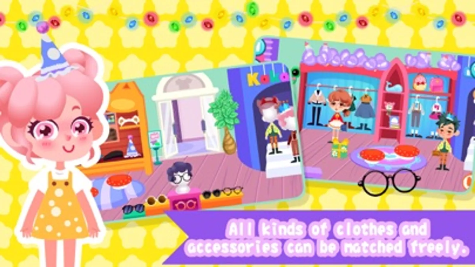 Come to a hearty shopping spree, you can choose to squeeze an ice cream for yourself, and then eat a delicious little cake. If you want to try a new dress style, then choose it in the clothing store! You can also grab your favorite toy from your doll machine with your friends! Enjoy the fun of exploring and discovering!