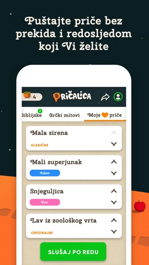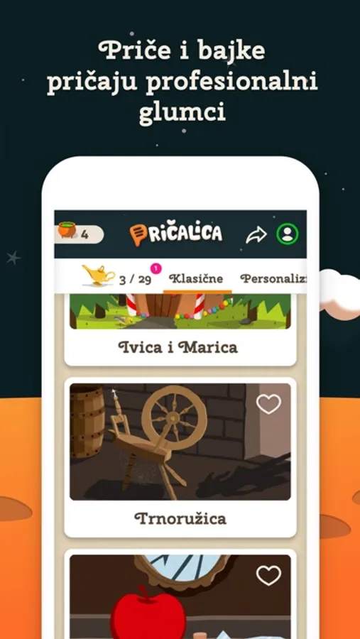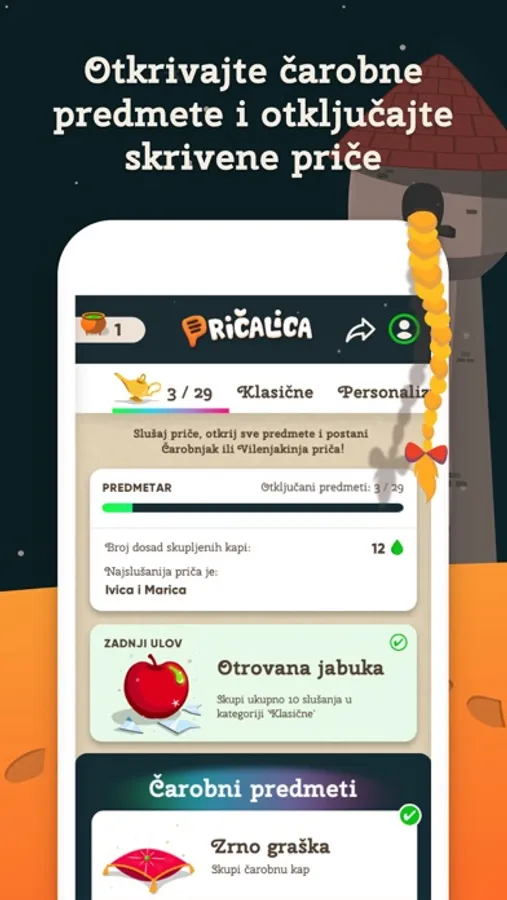 • slušajući dječje priče, prikupljati čarobne kapi koje Vam omogućuju otključavanje novih priča