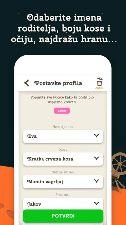• kreirati personalizirane priče u kojima Vaša djeca postaju glavni ili sporedni likovi