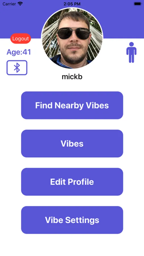 Search for nearby Vibe users using Bluetooth, or browse the Global Vibers list.