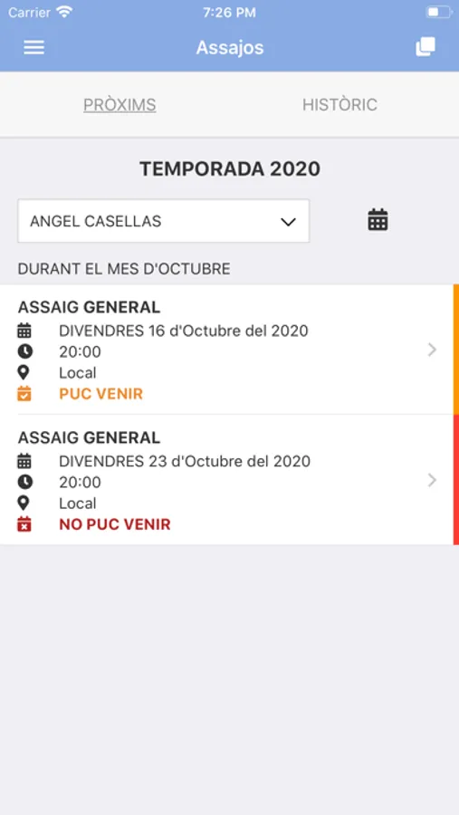 Les llistes d'assajos i actuacions disponibles quan i des d'on vulguis.