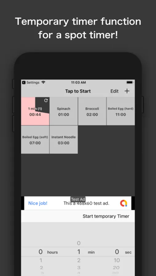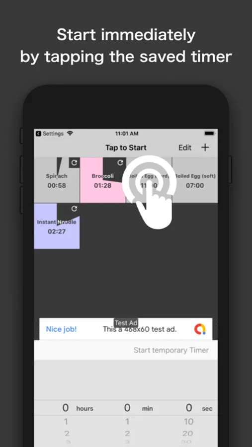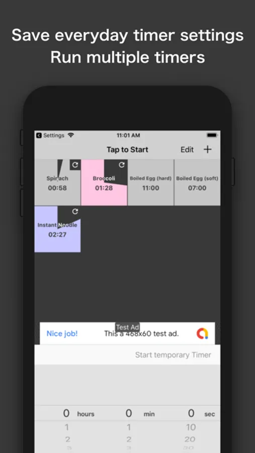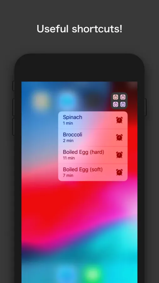 You can save your frequently used settings and have a kitchen timer app that you can start by tapping.