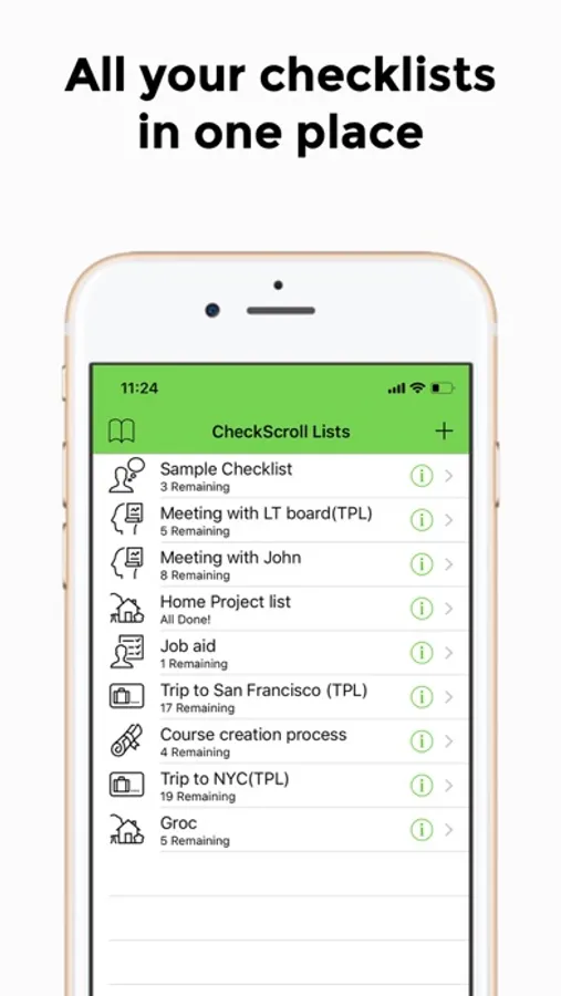 - Completion status of checklists at a glance (showing remaining items)