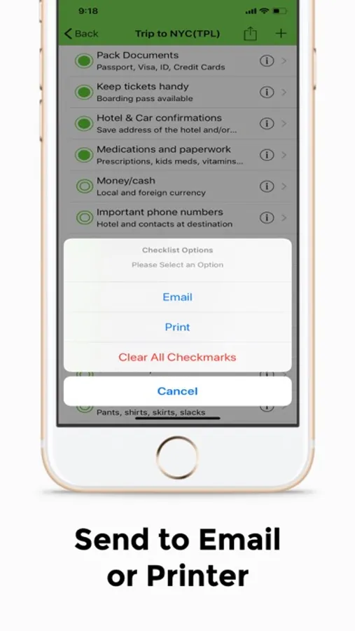 Your data is stored locally so no connection to internet is needed. You can share a checklist and completion status by email or by sending it to a printer.