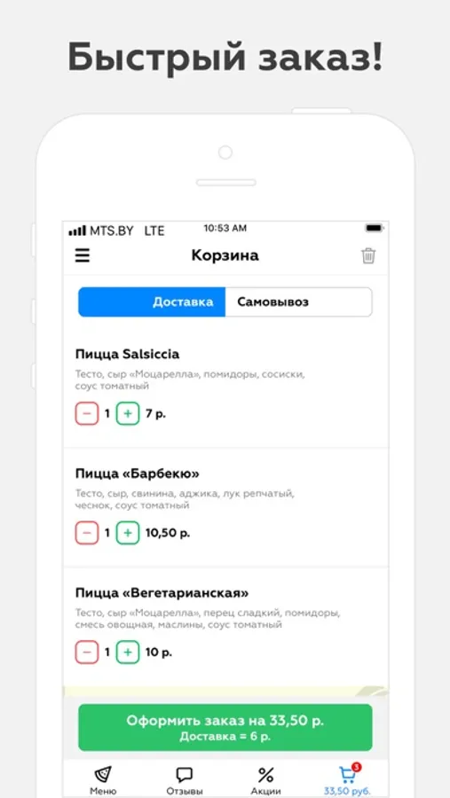 — Быстрый заказ с мгновенным подтверждением через приложение.