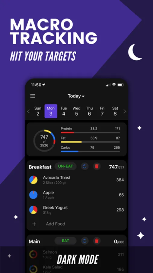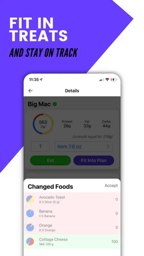 • Track a treat, and your plan will automatically adjust to make sure you still hit your macro goals